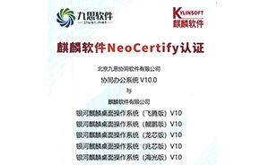 九思軟件協同辦公系統V10.0與銀河麒麟桌面操作系統(飛騰版、鯤鵬版、龍芯版、兆芯版、海光版)V10版本操作系統完成兼容互認證!