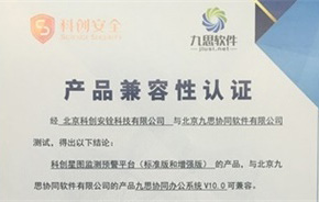 北京九思協同軟件有限公司的產品九思協同辦公系統V10.0與科創星圖檢測預警平臺(標準版和增強版)的產品完成產品兼容互認證工作,系統穩定運行,性能卓越。