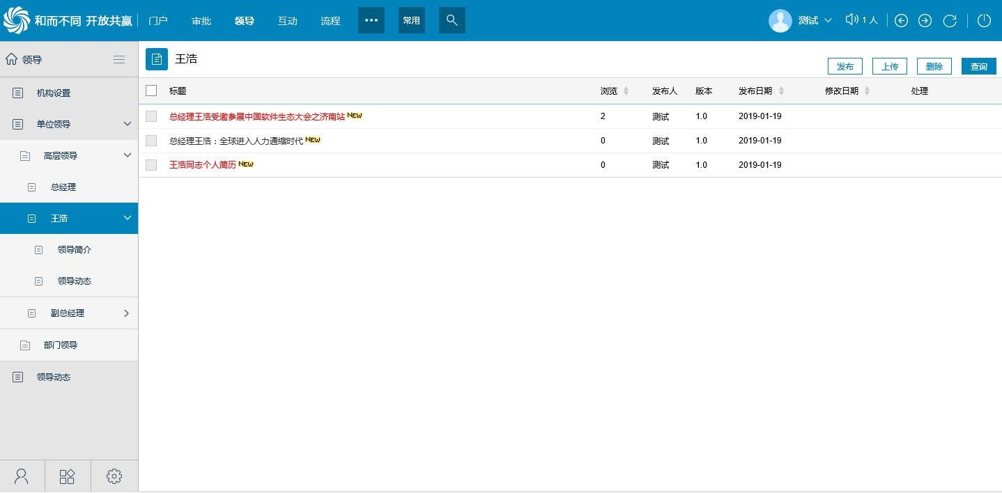 單位能夠持續(xù)正常運(yùn)營和可持續(xù)發(fā)展,跟領(lǐng)導(dǎo)的正確決策和政策的有力落實(shí)密不可分。因此,搭建領(lǐng)導(dǎo)動態(tài)系統(tǒng),一方面是為了讓單位領(lǐng)導(dǎo)的會議精神、政策文件、重大決議等及時(shí)地傳導(dǎo)下去,有利于工作的監(jiān)督和落地;