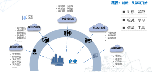 九思的核心團隊,二十年來服務眾多客戶的過程中,沉淀了各行各業(yè)的、豐富的經(jīng)營管理需求、理念、模式、制度、方案和工具的構件庫,包含但不限于:理念創(chuàng)新庫、模式提案庫、制度規(guī)范庫、解決方案庫、應用構件庫等,這些成為新客戶的“智庫”,可以高效的幫助新客戶對標優(yōu)秀企業(yè)、掌握成功理念、學習先進實踐,從而實現(xiàn)管理移植和工具復用,讓管理能力和水平可以得到大幅、快速的提升。