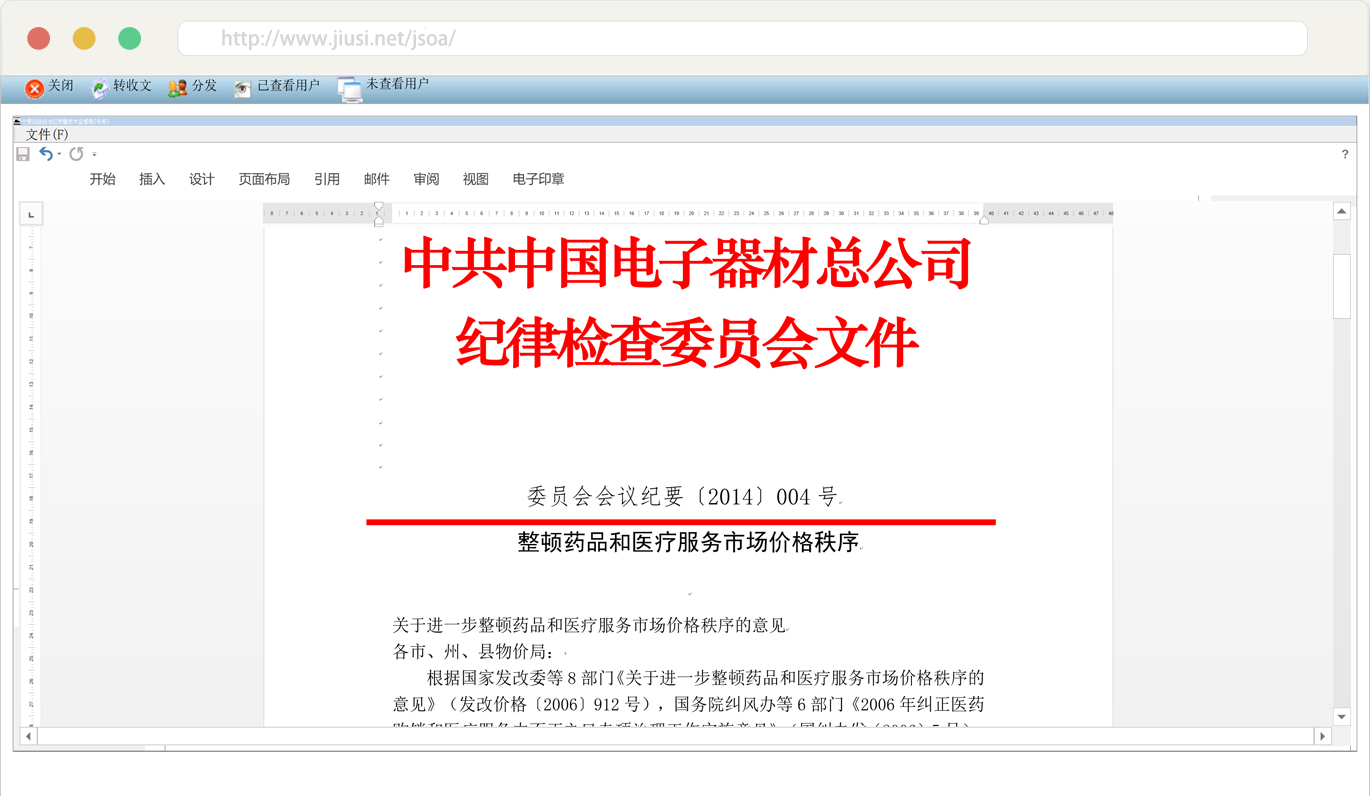 按照中央、國家和地方的公文辦理要求,九思OA辦公軟件政務平臺,功能包括我的收文、發文擬稿、發文草稿、發文查閱、發文設置、簽收公文、收文查閱、收文設置、公文表單等,并且公文的正文支持修改留痕、手寫簽名、套紅頭、簽章等各種應用。可靈活設定公文流程,自動進行流程跟蹤、催辦、查辦,并可歸類存檔和檢索。實現公文處理和管理的自動化。