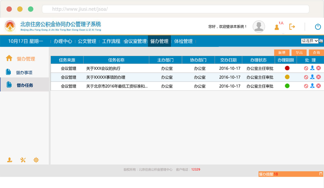 OA辦公軟件督查督辦子系統通過全方位的流程動態監控以及界面化管理的形式,實現對企事業單位的重點事項從立項、分解、執行、匯報、辦結、審核、催辦、延期、終止、反饋以及統計分析的全生命周期管理,確保督辦事項得到堅決有效的貫徹落實。